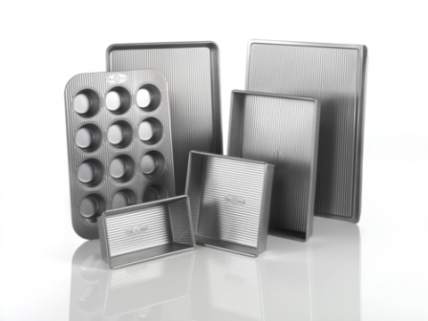 Bakeware Set, (6) piece, includes: large cookie sheet, half sheet, rectangular cake, square cake, small bread, and 12-cup muffin), 22 gauge aluminized steel, AMERICOAT® ePlus silicone glaze, Made in the USA with global materials