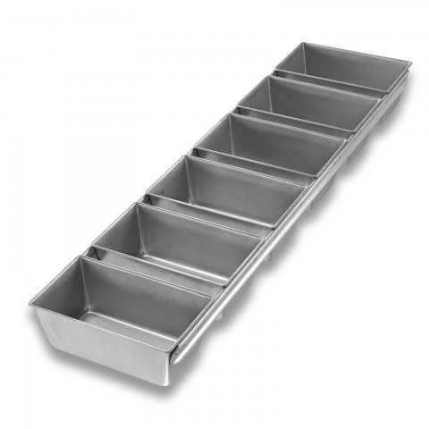 Bread Pan Set, 6-pan, 6-1/16" x 25-7/8" x 2-3/16" overall, (6) 5-5/8" x 3-1/8" strapped pans, strap under pan rims, wire in rim, small radius corners, seamless, hand wash recommended, 26 gauge aluminized steel, AMERICOAT® ePlus silicone glaze, PFOA free, made in the USA with global materials
