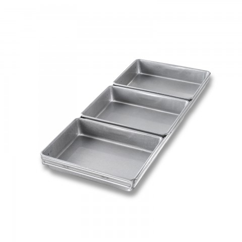 Cinnamon/Package Roll Pan Set, 3-pan, 9-7/8" x 22-1/8" overall, (3) 9-1/4" x 6-5/8" x 1-7/8" pans, wire in rim, seamless, hand wash recommended, 26 gauge aluminized steel, AMERICOAT® ePlus silicone glaze, PFOA free, made in the USA with global materials