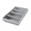 Bread Pan Set, 4-pan, 12-31/32" x 21-7/8" x 2-3/4" overall, (4) 12-1/4" x 4-1/2" strapped pans, wire in rim, band over wire, folded construction, hand wash recommended, 26 gauge aluminized steel, AMERICOAT® ePlus silicone glaze, PFOA Free, made in the USA with global materials