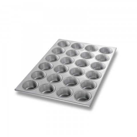 Cupcake Pan, 14-1/16" x 20-11/16" overall, makes (24) 2-3/4" dia. cupcakes, 3.8 oz. capacity each, wire in rim, hand wash recommended, 26 gauge cups/22 gauge panel, aluminized steel, AMERICOAT® ePlus silicone glaze, PFOA Free, made in the USA with global materials