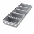 Bread Pan Set, 5-pan, 9-23/32" x 26" x 2-3/4", (5) 9" x 4-1/2" strapped pans, wire in rim, band over wire, folded construction, hand wash recommended, 26 gauge aluminized steel, AMERICOAT® ePlus silicone glaze, PFOA Free, made in the USA with global materials