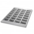 Mini Loaf Pan, 18-7/8" x 25-7/8" overall, makes (28) 3-7/8" x 2-1/2" loaves, 6.4 oz. capacity each, wire in rim, hand wash recommended, 26 gauge aluminized steel, AMERICOAT® ePlus silicone glaze, PFOA Free, made in the USA with global materials