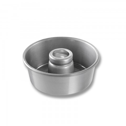 Angel Food/Tube Cake Pan, 60 oz., 7-1/2" dia. x 3-1/16" deep, nesting ring in tube, solid bottom, hand wash recommended, 15 gauge aluminum, AMERICOAT® ePlus silicone glaze, PFOA Free, made in the USA with global materials