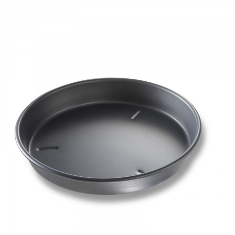 BĀKALON Deep Dish Pizza Pan, 10" dia. x 1-1/2" deep, nestable, embossed feet, hand wash only, 14 gauge hardcoat anodized aluminum, pre-seasoned, made in the USA with global materials