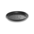 BĀKALON Deep Dish Pizza Pan, 10" dia. x 1-1/2" deep, perforated bottom, nestable, embossed feet, hand wash only, 14 gauge hardcoat anodized aluminum, plain, made in the USA with global materials