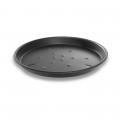BĀKALON Deep Dish Pizza Pan, 12" dia. x 1-1/2" deep, perforated bottom, nestable, embossed feet, hand wash only, 14 gauge hardcoat anodized aluminum, plain, made in the USA with global materials