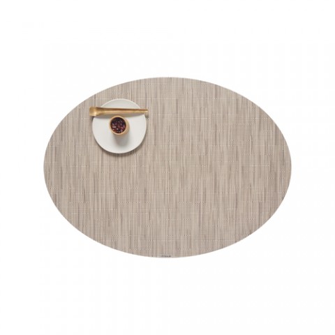 Bamboo Table Mat, 14" x 19-1/4", Oval, Oat, Microban® antimicrobial protection, TerraStrand™ woven vinyl, Made in USA (minimum order 4 each)