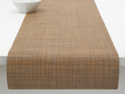 Basketweave Table Runner, 14x72, Teak, Microban® antimicrobial protection, TerraStrand® woven vinyl, Made in USA (minimun order 1 each)