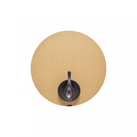 Basketweave Table Mat, 15" dia., round, Gilded, Microban® antimicrobial protection, TerraStrand™ woven vinyl, Made in USA (minimum order 4 each)