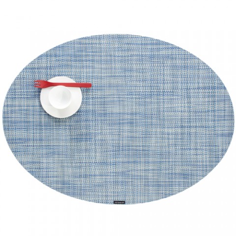 Mini Basketweave Table Mat, 14" x 19-1/4", Oval, Chambray, Microban® antimicrobial protection, TerraStrand™ woven vinyl, Made in USA (minimum order 4 each)
