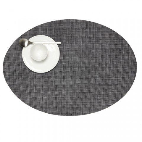 Mini Basketweave Table Mat, 14" x 19-1/4", Oval, Cool grey, Microban® antimicrobial protection, TerraStrand™ woven vinyl, Made in USA (minimum order 4 each)
