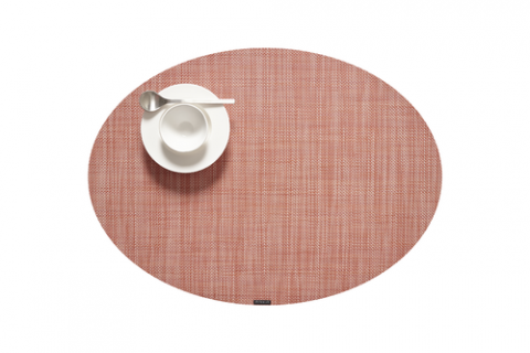 Mini Basketweave Collection Table Mat. 14 x 19.25" Oval, Clay, Microban® antimicrobial protection, TerraStrand™ woven vinyl, Made in USA (minimum order 4 each)