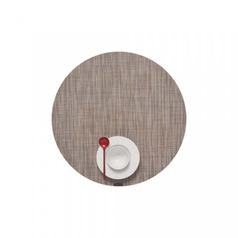 Mini Basketweave Table Mat, 15" dia., Round, Soapstone, Microban® antimicrobial protection, TerraStrand™ woven vinyl, Made in USA (minimum order 4 each)