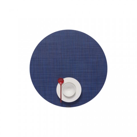 Mini Basketweave Table Mat, 15" dia., Round, Indigo, Microban® antimicrobial protection, TerraStrand™ woven vinyl, Made in USA (minimum order 4 each)