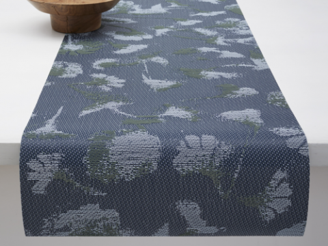 Botanic Table Runner, 14x72, Indigo, Microban® antimicrobial protection, TerraStrand® woven vinyl, Made in USA (minimun order 1 each)