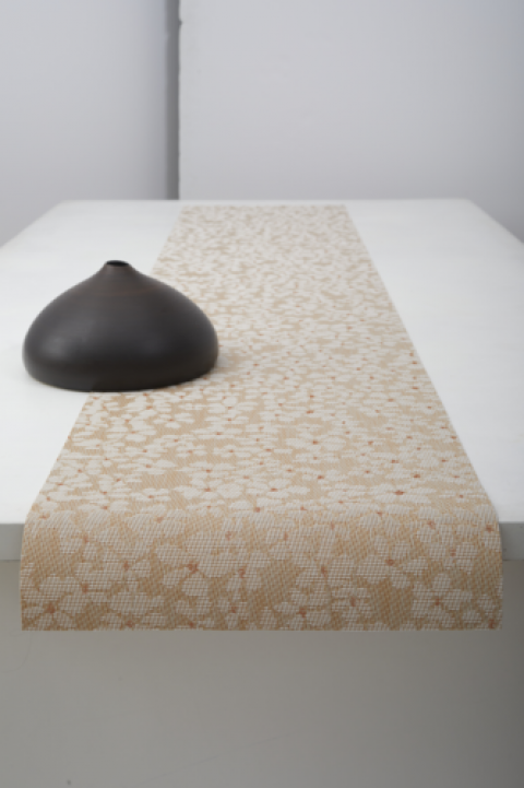 Flora Table Runner 14x72, Almond, Microban® antimicrobial protection, TerraStrand® woven vinyl, Made in USA (minimum order 1 each)