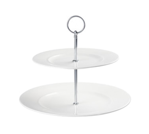 Plate Tower, 8-1/2"H, 2-tier, holds: (1) 8" dia. & (1) 11" dia. plate, round, metal center rod, fine china, Alchemy® Ambience, White (UK Stocked Item) (2 each per case) (order per case only)
