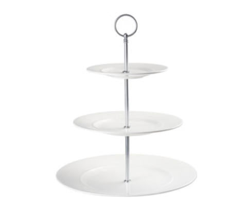 Plate Tower, 13"H, 3-tier, holds: (1) 6" dia. (1) 8" dia. & (1) 11" dia. plate, round, metal center rod, fine china, Alchemy® Ambience, White (UK Stocked Item) (2 each per case) (order per case only)