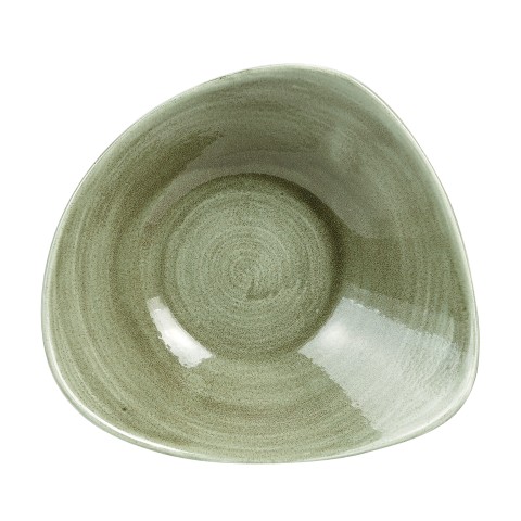 Bowl, 21 oz., 9-1/4", triangular, rolled edge, microwave & dishwasher safe, ceramic, eco glazed finish, Churchill® Super Vit, Stonecast®, Patina, Lotus, Burnished Green (US Stocked Item) (12 each per case) (order per case only)