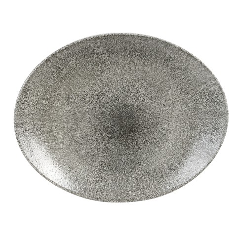 Plate, 12-1/2" x 10", oval, coupe, microwave & dishwasher safe, ceramic, eco glazed finish, Churchill® Super Vit, Raku, Orbit, Quartz Black (US Stocked Item) (12 each per case) (order per case only)