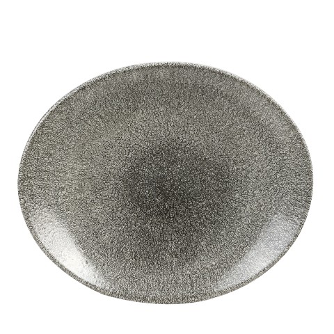 Plate, 10-5/8" x 9", oval, coupe, microwave & dishwasher safe, ceramic, eco glazed finish, Churchill® Super Vit, Raku, Orbit, Quartz Black (US Stocked Item) (12 each per case) (order per case only)