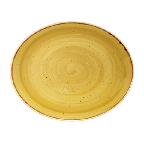 Plate, 7-3/4", oval, coupe, stackable, microwave & dishwasher safe, ceramic, eco glazed finish, Churchill® Super Vit, Stonecast®, Mustardseed Yellow (US Stocked Item) (12 each per case) (order per case only)