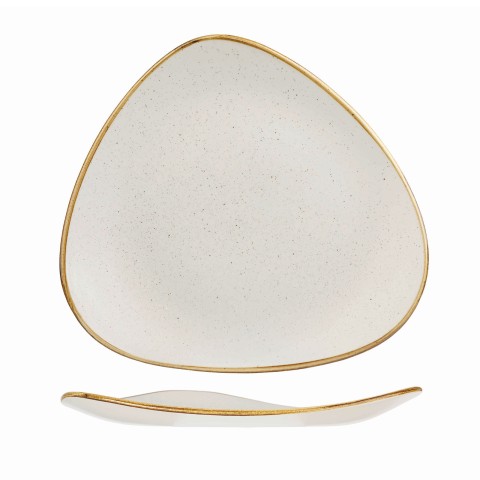 Plate, 12-1/4", triangular, large, coupe, rolled edge, microwave & dishwasher safe, ceramic, eco glazed finish, Churchill® Super Vit, Stonecast®, Barley White (US Stocked Item) (6 each per case) (order per case only)