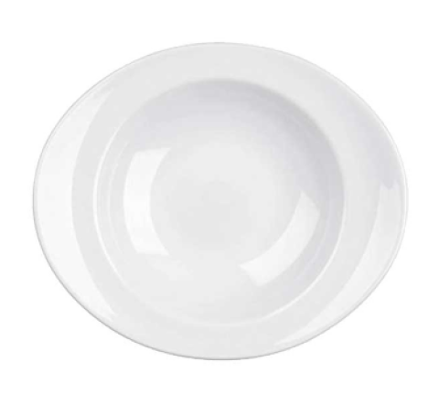 Pasta Plate, 12" x 10-1/2", oval, deep, wide rim, curved, rolled edge, stackable, microwave & dishwasher safe, ceramic, eco glazed finish, Churchill® Super Vit, Orbit, Equation, White (US Stocked Item) (12 each per case) (order per case only)