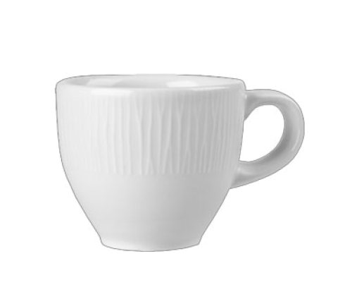 Cup, 3.5 oz., 2-1/2" dia., stackable, ring-handle, rolled edge, embossed rim, thermal shock resistant, microwave & dishwasher safe, ceramic, eco glazed finish, Bamboo, Churchill® Super Vit, White (UK Stocked Item) (12 each per case) (order per case only)