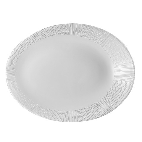 Plate, 9-1/2" x 7-1/2", oval, embossed rim, thermal shock resistant, microwave & dishwasher safe, ceramic, eco glazed finish, Bamboo, Churchill® Super Vit, White (US Stocked Item) (12 each per case) (order per case only)