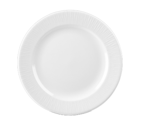 Plate, 9-1/8" dia., round, rolled edge, embossed rim, thermal shock resistant, microwave & dishwasher safe, ceramic, eco glazed finish, Bamboo, Churchill® Super Vit, White (US Stocked Item) (12 each per case) (order per case only)