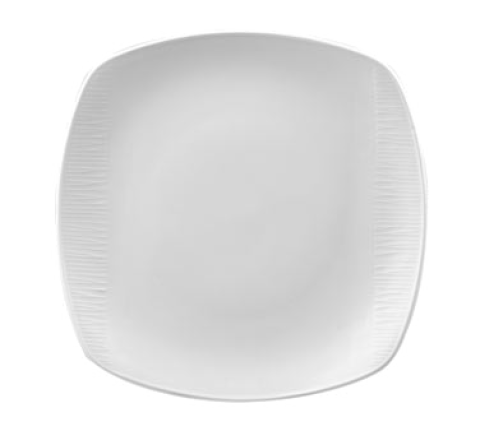 Plate, 10", square, with embossed rim, thermal shock resistant, microwave & dishwasher safe, ceramic, eco glazed finish, Bamboo, Churchill® Super Vit, White (US Stocked Item) (12 each per case) (order per case only)