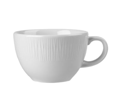 Coffee Cup 12 oz., 4-1/8" dia., embossed rim, thermal shock resistant, microwave & dishwasher safe, ceramic, eco glazed finish, Bamboo, Churchill® Super Vit, White (US Stocked Item) (12 each per case) (order per case only)
