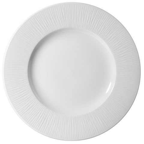 Plate, 12" dia., round, rolled edge, wide embossed rim, thermal shock resistant, microwave & dishwasher safe, ceramic, eco glazed finish, Bamboo, Churchill® Super Vit, White (US Stocked Item) (12 each per case) (order per case only)