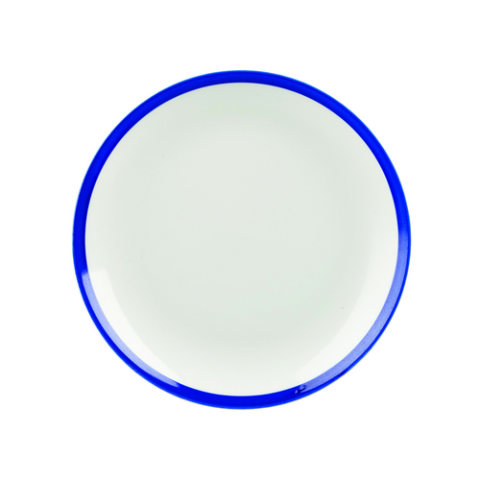 Plate, 6-1/2" dia., round, coupe, rolled edge, microwave & dishwasher safe, ceramic, eco glazed finish, Churchill® Super Vit, Retro Blue, White with blue rim (UK Stocked Item)