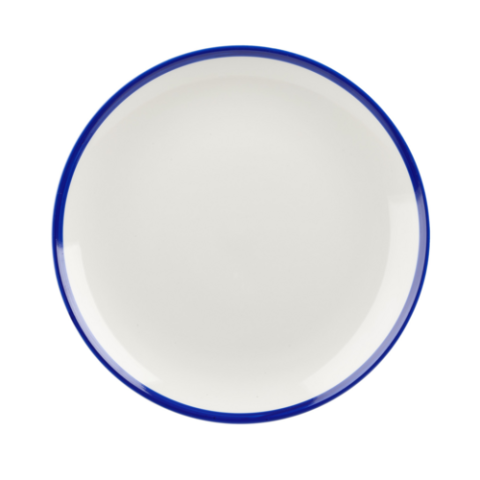 Plate, 8-2/3" dia., round, coupe, rolled edge, microwave & dishwasher safe, ceramic, eco glazed finish, Churchill® Super Vit, Retro Blue, White with blue rim (UK Stocked Item)