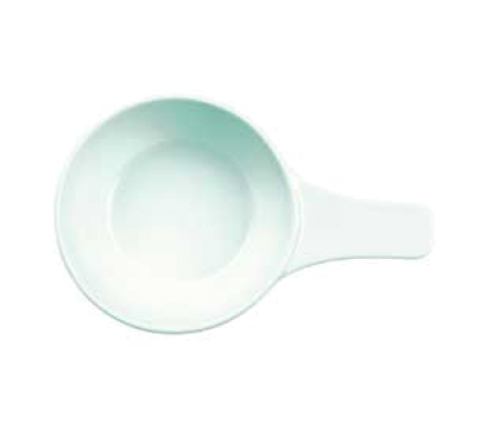 Presentation Pan, 8 oz., 4-1/4" dia., round, with handle, drip spout, rolled edge, chip resistant, microwave & dishwasher safe, glazed finish, porcelain, Menu, Art de Cuisine®, White (US Stocked Item) (6 each per case)(order per case only)