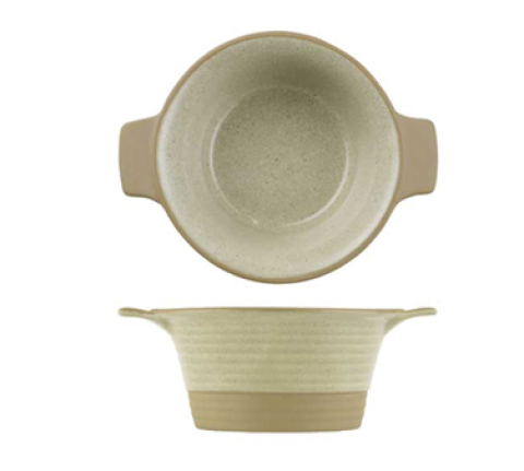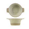 Pie Dish, 14 oz., 5-1/2" dia., round, small, with handle, biscuit edge, embossed line, heat & shock resistance, freezer, microwave & dishwasher safe, glazed finish, stoneware, vitrified, Art de Cuisine® Igneous, terracotta (US Stocked Item) (6 each per case)(order per case only)