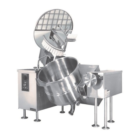 Kettle/Mixer, gas, 40-gallon capacity, 2/3 steam jacket design, 316 series stainless steel liner, tilt-type, automatic ignition, solid-state temperature control, power on/off switch, variable ratio control between scraper & agitator, two-piece cover with screen, includes 3" diameter quick opening butterfly valve, strainer and hot/cold faucet, open leg base, stainless steel construction, 140,000 BTU (contact factory for price)