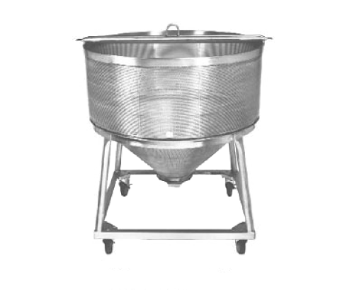 Pasta Basket, for 200 gallon kettle, perforated basket, 1/8" perforations, cone shape bottom with 14" sliding dump gate, type 304 stainless steel (Contact factory for price)