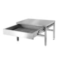 Equipment Stand, for single kettles only, open base with sliding drain drawer & splash screen, 28" x 26", 18" high, stainless steel top and legs, allows unit to be hard piped to a floor drain