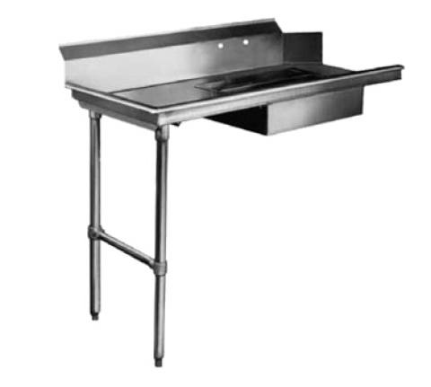 Soiled Dishtable, straight design, 60"W x 29"D x 42-3/4"H, left-to-right operation, 16/304 stainless steel top, 8"H backsplash, 20" x 20" x 5" deep pre-rinse sink, 8" OC splash mount faucet holes, 2" basket drain, raised rolled edges on front & side, stainless steel legs & adjustable side bracing, NSF