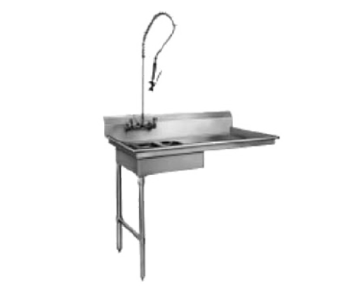 Soiled Dishtable, undercounter, 48"W x 29"D x 42-3/4"H, 16/304 stainless steel top, 8"H backsplash, 20" x 20" x 5" deep pre-rinse sink on left, 8" OC splash mount faucet holes, 2" basket drain, raised rolled edges on front & sides, stainless steel legs & adjustable side bracing, NSF