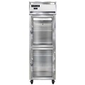 Freezer, display, one-section, self-contained refrigeration, aluminum exterior & interior, stainless steel front, standard depth, hinged half-height glass doors, cylinder locks, electronic control with digital display, unit can be adjusted to operate as low as -10°F, hi-low alarm, electric condensate evaporator, R290 Hydrocarbon refrigerant, 1/2 HP, cETLus, NSF