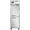 Freezer, reach-in, one-section, self-contained refrigeration, stainless steel front, aluminum exterior & interior, standard depth, half-height solid doors, cylinder locks, electronic control with digital display, unit can be adjusted to operate as low as -10°, hi-low alarm, electric condensate evaporator, R290 Hydrocarbon refrigerant, 1/2 HP, cETLus, NSF, ENERGY STAR®