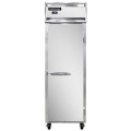 Freezer, reach-in, one-section, self-contained refrigeration, stainless steel front, aluminum interior & ends, shallow depth, full-height solid door, cylinder lock, electronic control with digital display, unit can be adjusted to operate as low as -10°F, hi-low alarm, R290 Hydrocarbon refrigerant, 1/2 HP, cETLus, NSF