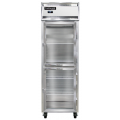 Refrigerator, pass-thru, 21 cu. ft. capacity, one-section, self-contained refrigeration, standard depth, half-height glass doors on front, half height solid doors on rear, electronic controller with digital display, electric condensate evaporator, stainless steel front, aluminum interior & ends, 5" casters, NEMA-5-15P, 1/4 HP, cETLus, NSF, Made in the USA