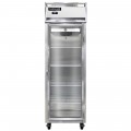 Refrigerator, reach-in display, one-section, self-contained refrigeration, stainless steel exterior & interior, standard depth, narrow hinged glass door, cylinder lock, electronic control with digital display, hi-low alarm, electric condensate evaporator, R290 Hydrocarbon refrigerant, 1/4 HP, cETLus, NSF, ENERGY STAR®