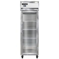 Refrigerator, pass-thru, 21 cu. ft. capacity, one-section, self-contained refrigeration, standard depth, full-height glass door on front, full height solid door on rear, electronic controller with digital display, electric condensate evaporator, stainless steel exterior & interior, 5" casters, NEMA-5-15P, 1/4 HP, cETLus, NSF, Made in the USA